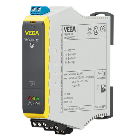 VEGATOR 121 este un controler pentru detectarea nivelului cu ieșire de releu pentru întrerupătoarele de nivel cu vibrație VEGASWING, VEGAVIB și VEGAWAVE în varianta electronică "Two-wire 8/16 mA". Cu acest aparat pot fi rezolvate sarcini de control simple. Aplicațiile tipice sunt funcțiile de monitorizare, cum ar fi protecția împotriva revărsării sau a funcționării în gol. Opțional, este disponibilă o ieșire de semnal fals. Avantajul dumneavoastră Instalare simplă prin montajul pe șină de transport, precum și prin bornele detașabile, codate Monitorizare completă detectează scurtcircuitul și circuitul deschis al liniei de măsurare și perturbațiile din senzor Domeniu de aplicare flexibil prin comutarea opțiunii de comutare a releului de siguranță pe al doilea releu de funcție Test de funcționare simplu și convenabil prin intermediul butonului de testare, inclusiv evaluare automată (de asemenea pentru SIL și WHG)