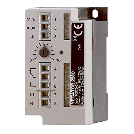 VEGATOR 256C este un controler pentru electrozi conductori EL 1 ... EL 8. Aplicațiile sunt detecții simple de nivel sau controlul pompelor. Avantajul dumneavoastră Reglarea simplă a punctelor de comutare prin potențiometru Instalare simplă prin montare pe șină de transport Unitate compactă de alimentare cu tensiune și prelucrare a unei sonde conductoare